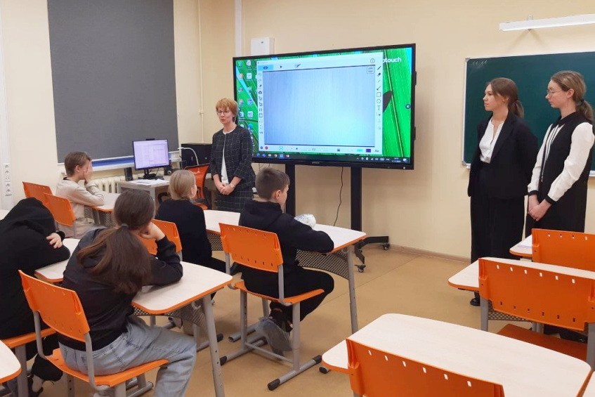 Шестиклассники посетили Интеллект-центр, где Ольга Юрьевна Кичигина представила исторические факты времен Отечественной войны в Заполярье, и познакомились с зонами для проведения практических работ, в одной из которых под присмотрам преподавателя Анастасии Владимировны Климановой освоили первичные навыки работы с интеллектуальной панелью.