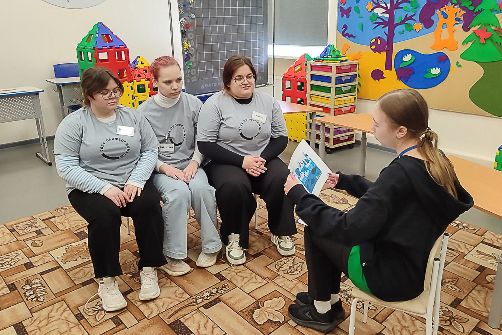 Конкурсная площадка компетенции «Дошкольное воспитание» жила организацией режима второй половины дня в детском саду. Участникам основной группы потребовались умения проводить бодрящую гимнастику после дневного сна, развивающую игру и организационно-мотивационную беседу. В гимнастику необходимо было включить упражнения на профилактику плоскостопия и формирование правильной осанки. А ведь надо было ещё подобрать музыкальное сопровождение, функциональное и спортивное оборудование! Все справились: зарядки, действительно, бодрили, игры развивали, а сами участники держались уверенно и выглядели настоящими профессионалами.