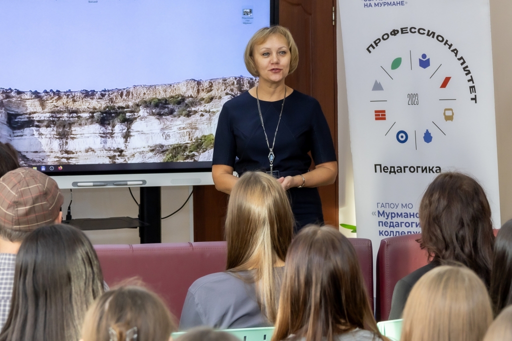 О перспективах трудоустройства будущих педагогов гостям рассказала директор МБОУ г. Мурманска «Гимназия №1» Марина Александровна Чистякова. Особое внимание было уделено мерам государственной поддержки в сфере образования.