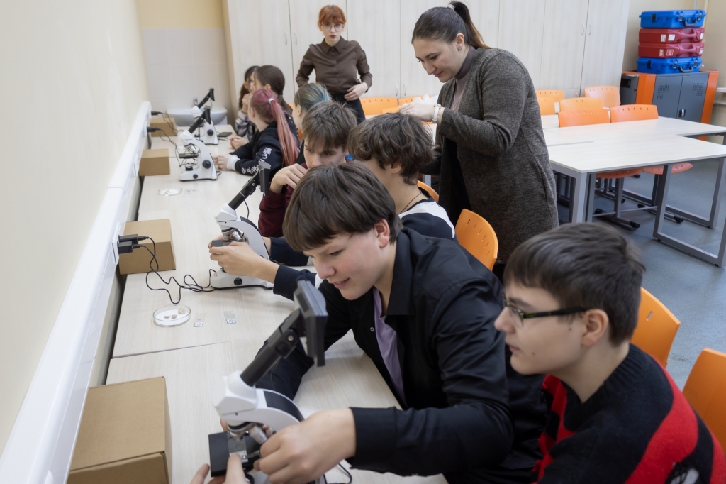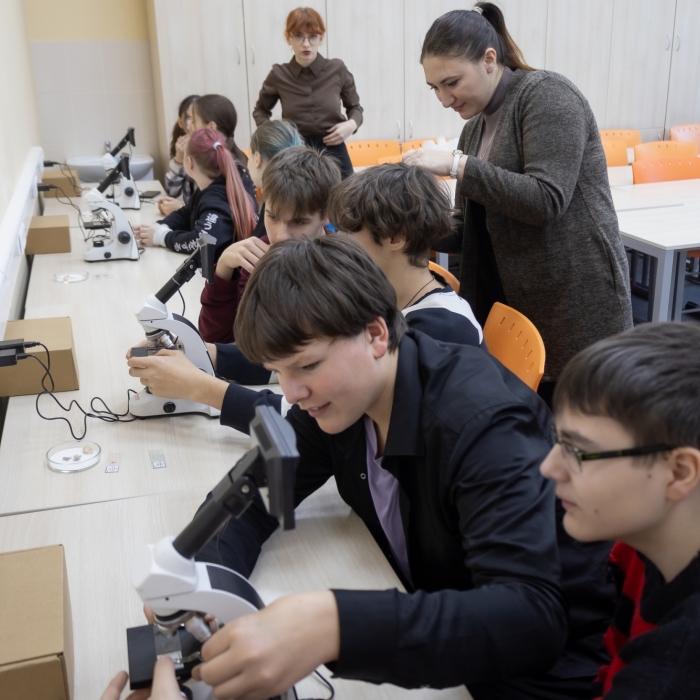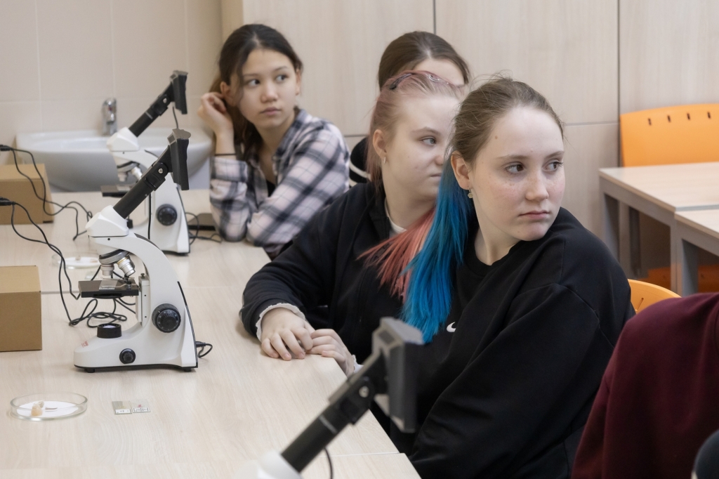Учащиеся погрузились в увлекательное исследование живой природы – рассмотрели уникальное строение корня лотоса, изучили сложную анатомию лапки комара, исследовали многослойность кожи млекопитающих.