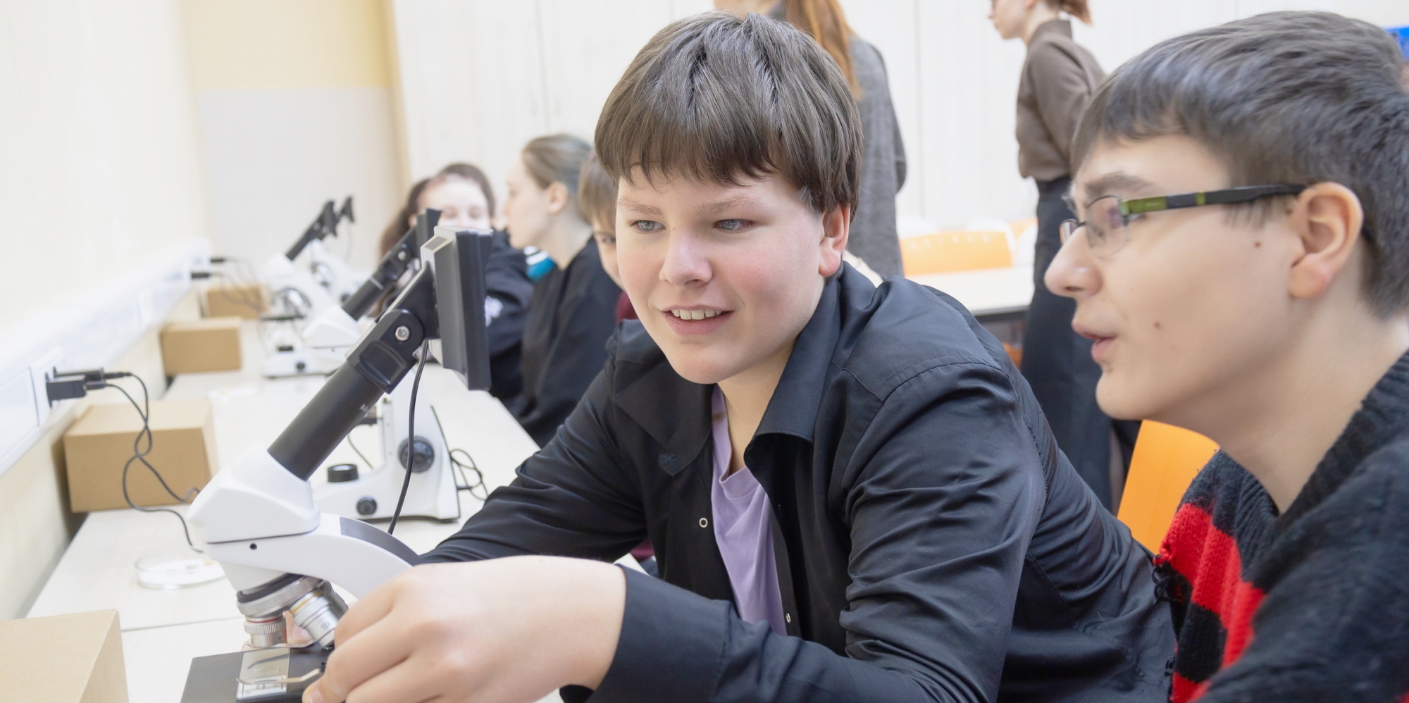 Учащиеся погрузились в увлекательное исследование живой природы – рассмотрели уникальное строение корня лотоса, изучили сложную анатомию лапки комара, исследовали многослойность кожи млекопитающих.