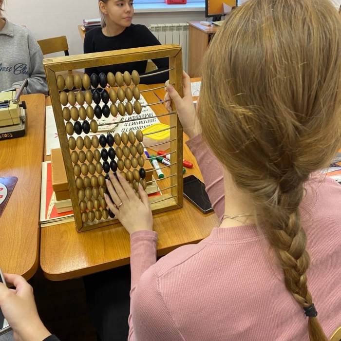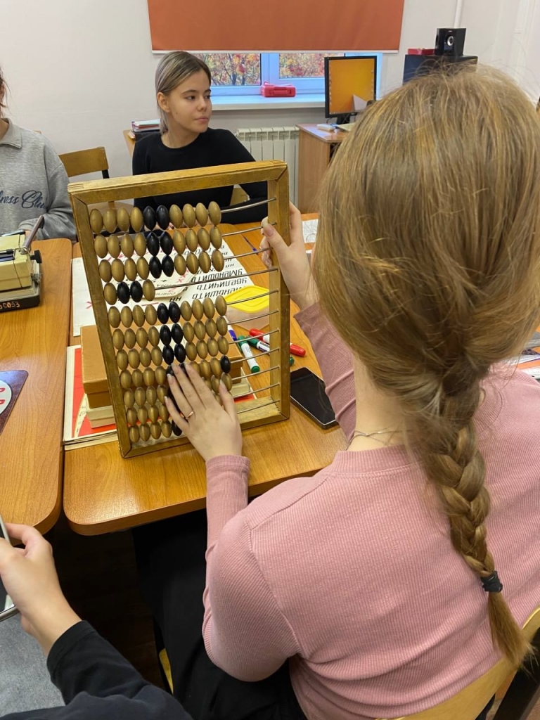 Ребята попробовали применить музейные экспонаты в современных условиях и даже провести фрагменты уроков: научить решать примеры на счетах, напечатать на печатной машинке карточку «Спряжение глаголов» для урока русского языка, определять и систематизировать растения из коллекции гербария, определять назначение различных видов пластмасс и конечно написать перьевой ручкой.