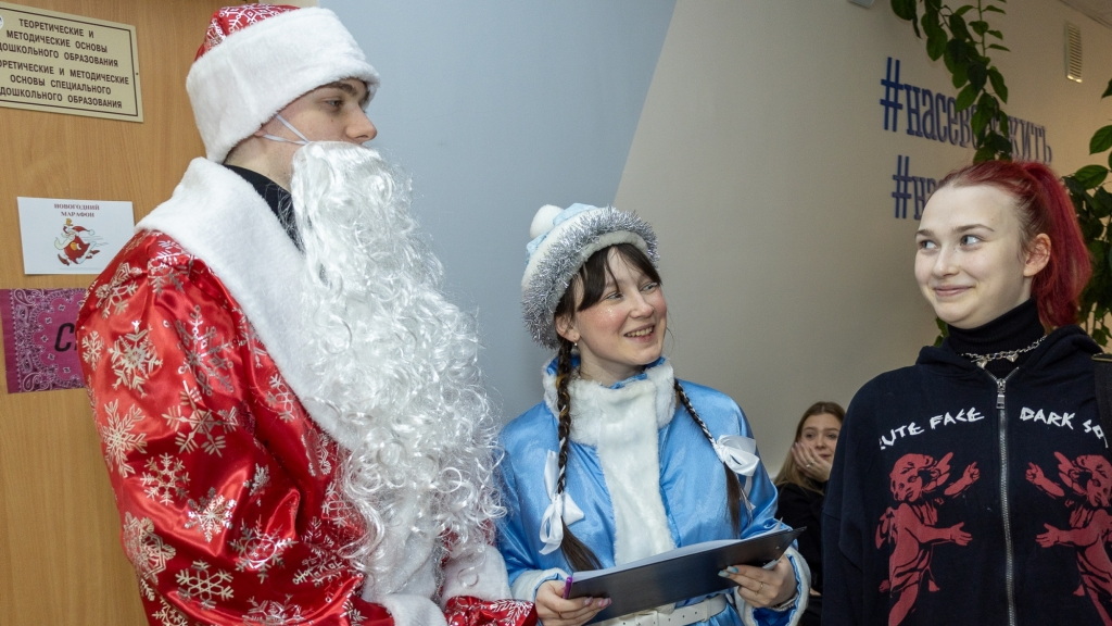 Участниками Новогоднего марафона стали сегодня студенты и преподаватели Мурманского педагогического колледжа.