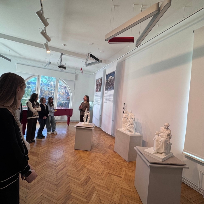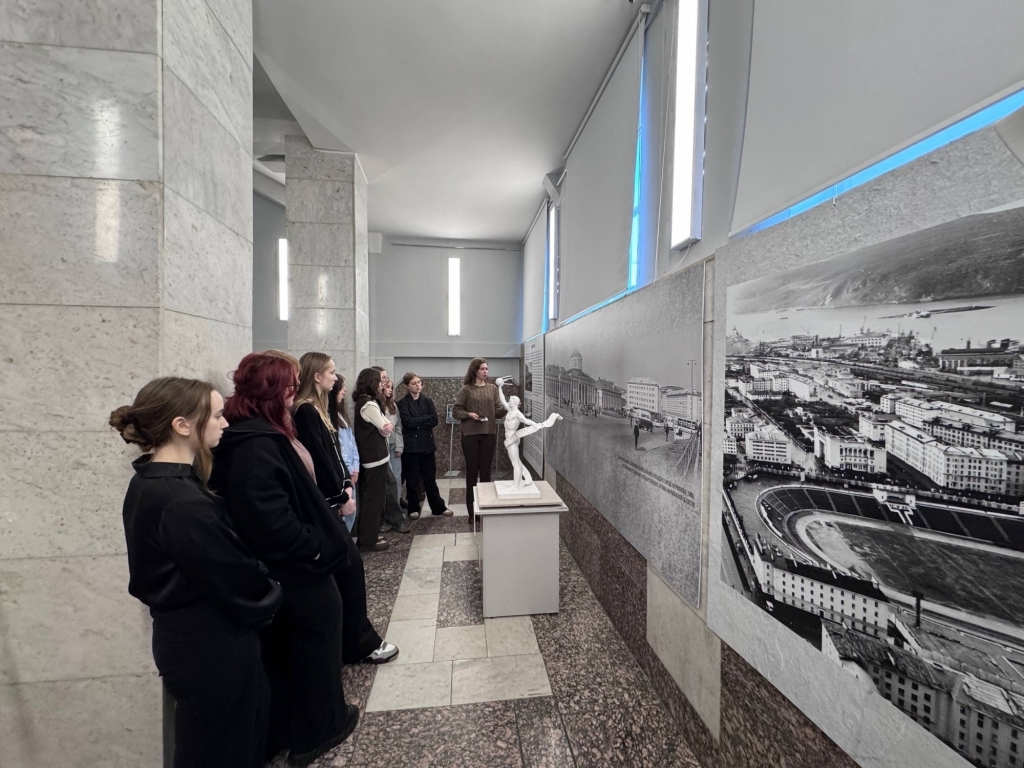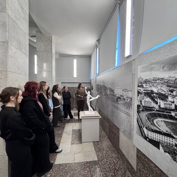 Студенты 1 курса Мурманского педагогического колледжа посетили выставку 3D-макетов утраченных скульптур города Мурманска «Скульптурные истории. Искусство и технологии». Одним из авторов данной выставки является студентка 3 курса Манторова Мария.