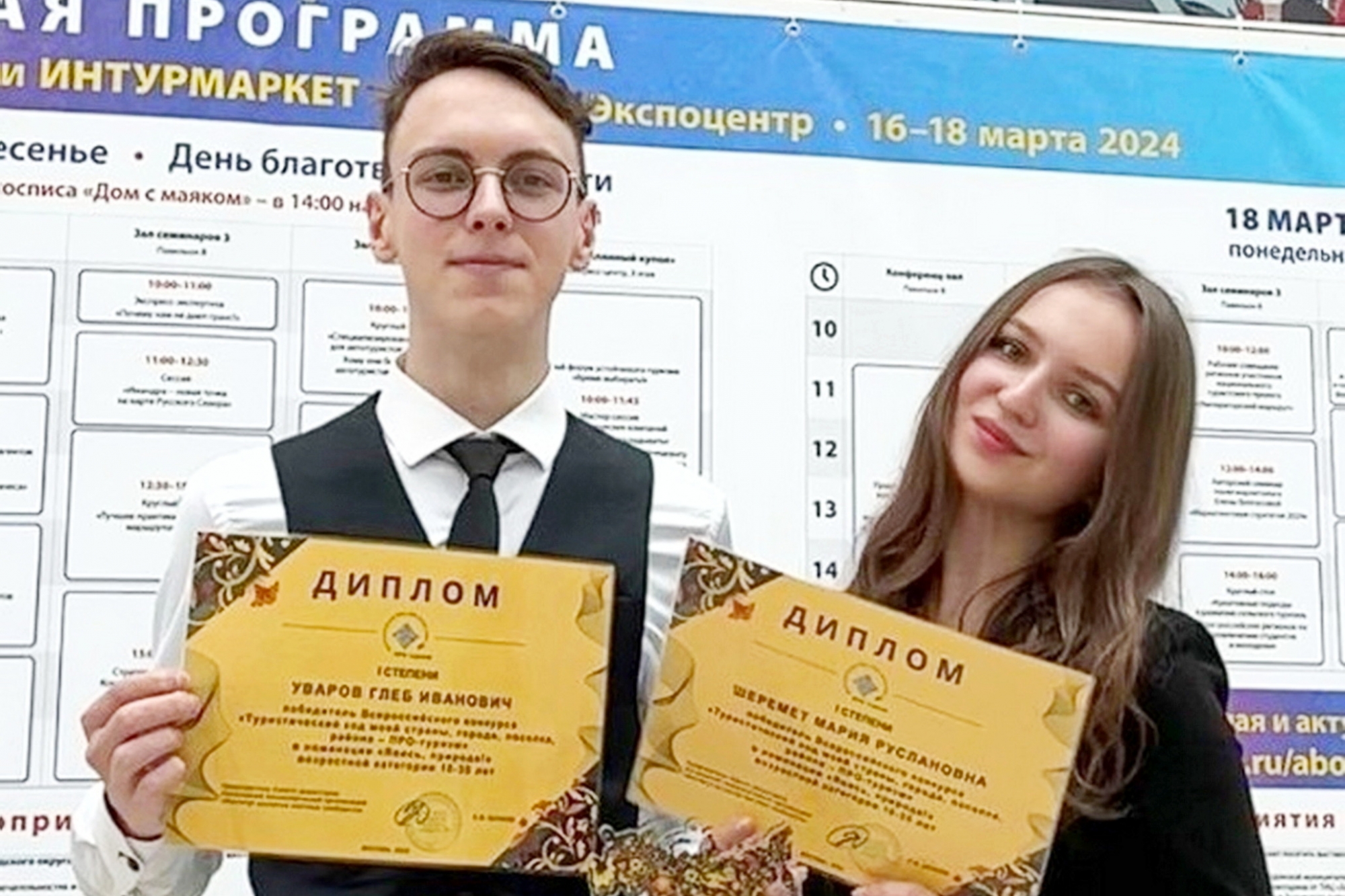Студенты 3 курса специальности «Туризм» Уваров Глеб и Мария Шеремет стали победителями Всероссийского конкурса «Туристический код моей страны, города, поселка, района – ПРО ТУРИЗМ 2024» образовательной платформы «Россия – территория развития» в номинации «Явись, природа!».