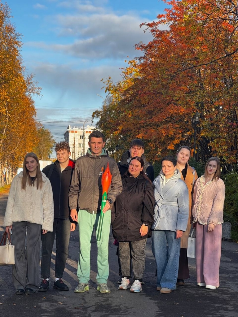 Студенты 5 курса группы К Мурманского педагогического колледжа пришли сегодня на старт мурманского этапа эстафеты, чтобы поддержать участников забега.