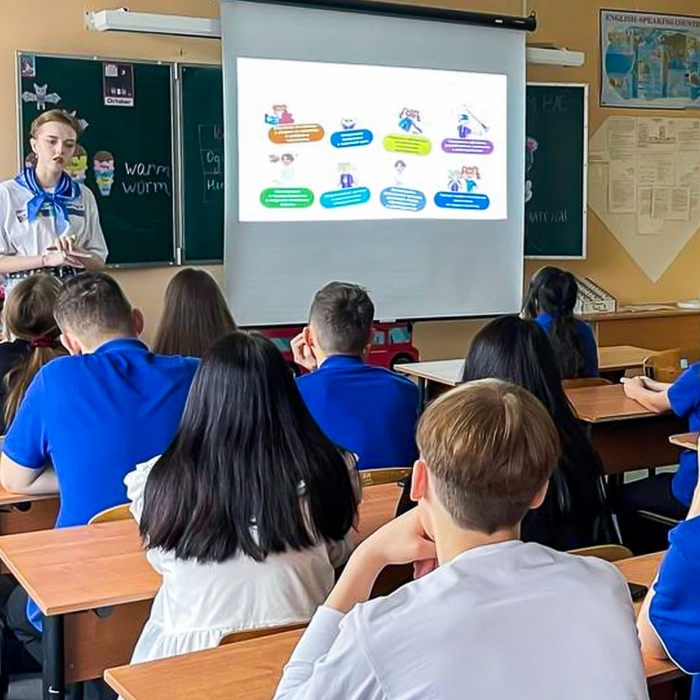 В рамках подготовки к Единому дню открытых дверей амбассадоры «Профессионалитета» Мурманского педагогического колледжа провели классные часы в г. Полярный Мурманской области: Елизавета Крылова, группа 2С, в МАОУ «Средняя общеобразовательная школа №1 им. М.А. Погодина» и Ирина Сорокина, группа 2К, в МАОУ «Гимназия».
