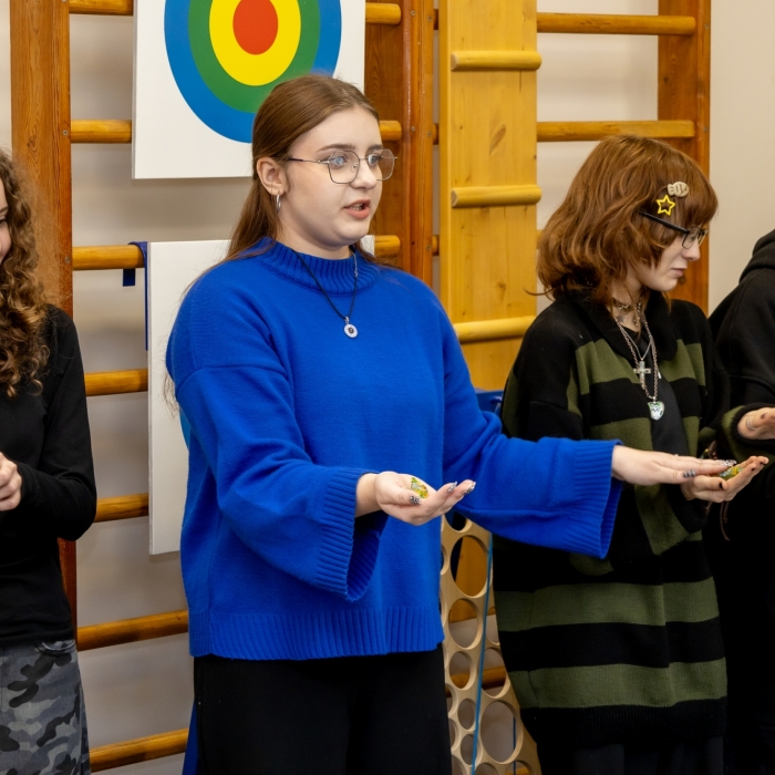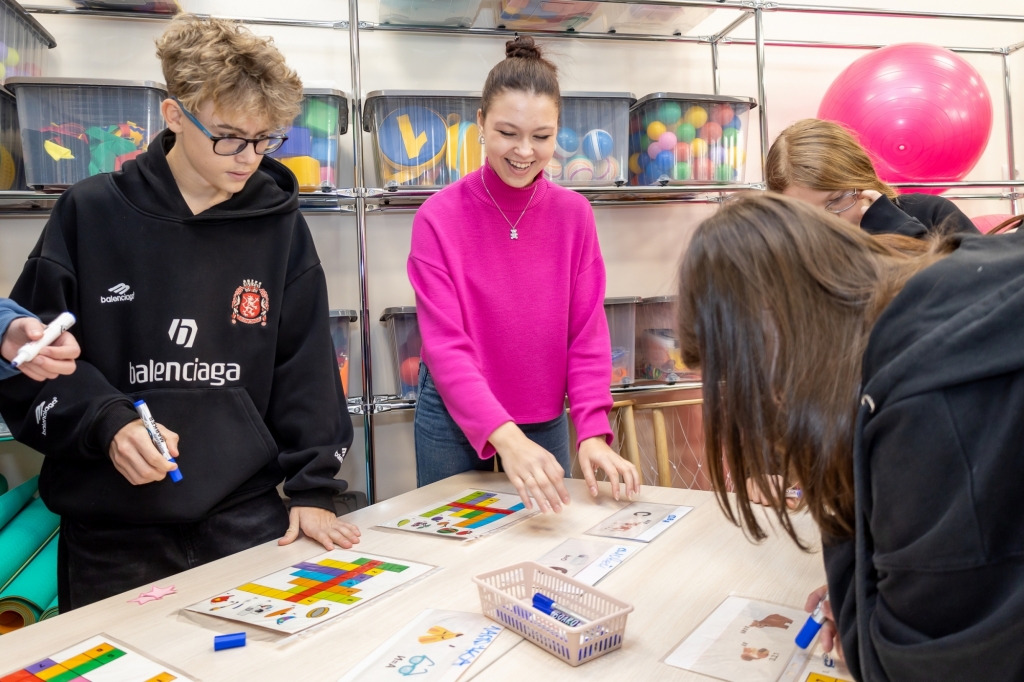 Ксения Костина и Владислава Усова, Виолетта Расторгуева и Элина Скируха, Алина Синицына и Виктория Полякова вместе с педагогами наставниками Натальей Борисовной Васильевой и Евгенией Андреевной Малик подготовили для потенциальных абитуриентов? Или студентов игры и упражнения на сближение участников коллектива, развитие логического мышления, речи, памяти и воображения.