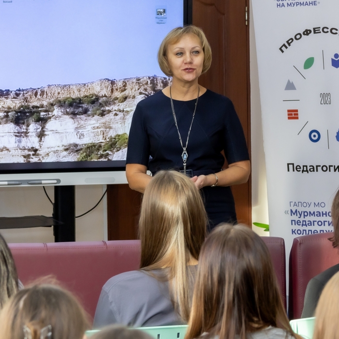 О перспективах трудоустройства будущих педагогов гостям рассказала директор МБОУ г. Мурманска «Гимназия №1» Марина Александровна Чистякова. Особое внимание было уделено мерам государственной поддержки в сфере образования.
