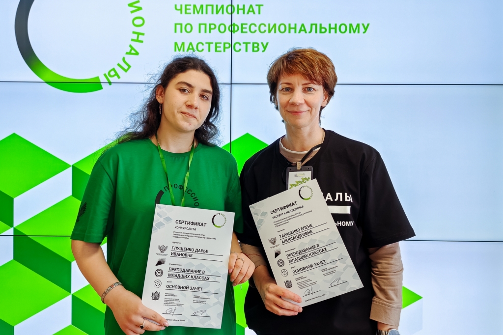 Студентка 3 курса группы К2 Дарья Глущенко (наставник – Елена Александровна Тарасенко) и учащаяся 9 класса МБОУ ЗАТО г.Североморск «Гимназия №1» Анастасия Зайцева (наставники – Надежда Борисовна Дуванова и Кристина Юрьевна Майер) продемонстрировали высокий уровень подготовки, творческий подход и были награждены медальоном «За профессионализм».