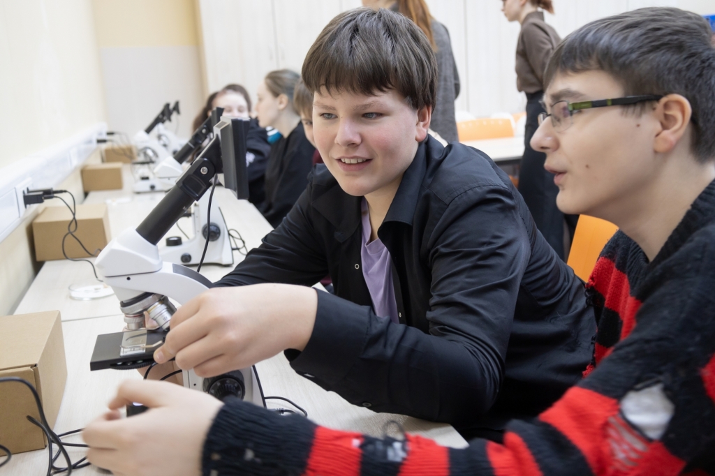 Учащиеся погрузились в увлекательное исследование живой природы – рассмотрели уникальное строение корня лотоса, изучили сложную анатомию лапки комара, исследовали многослойность кожи млекопитающих.