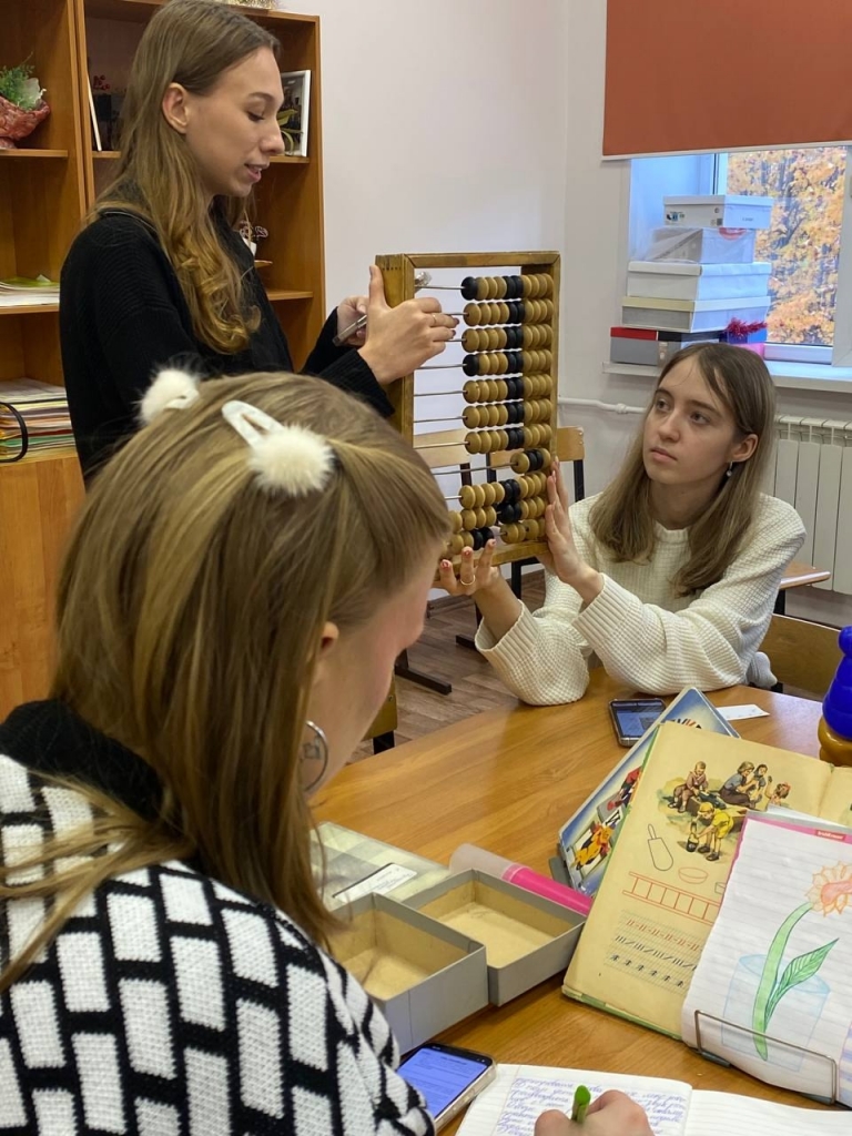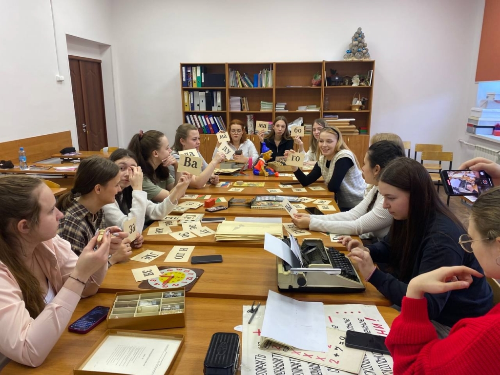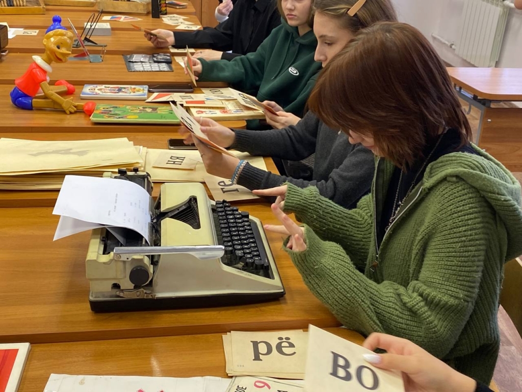 Ребята попробовали применить музейные экспонаты в современных условиях и даже провести фрагменты уроков: научить решать примеры на счетах, напечатать на печатной машинке карточку «Спряжение глаголов» для урока русского языка, определять и систематизировать растения из коллекции гербария, определять назначение различных видов пластмасс и конечно написать перьевой ручкой.