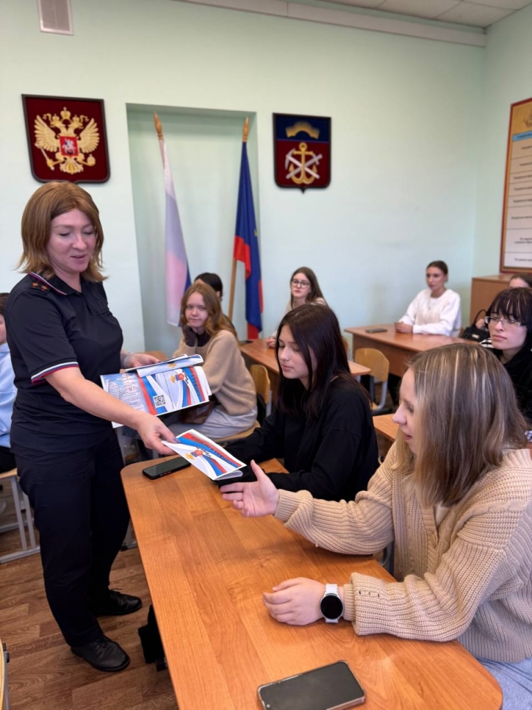 В Мурманском педагогическом колледже прошел кураторский час, на котором студенты первого курса встретились с заместителем начальника Отдела полиции №2 УМВД России по г. Мурманску подполковником полиции Хасановой Людмилой Анатольевной.