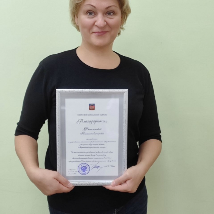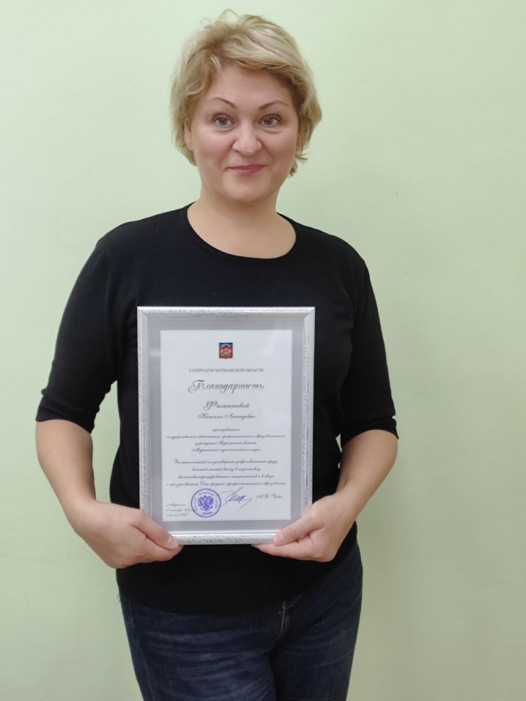 - Благодарность губернатора Мурманской области – Ирина Владимировна Новожилова и Наталья Леонидовна Филиппова,