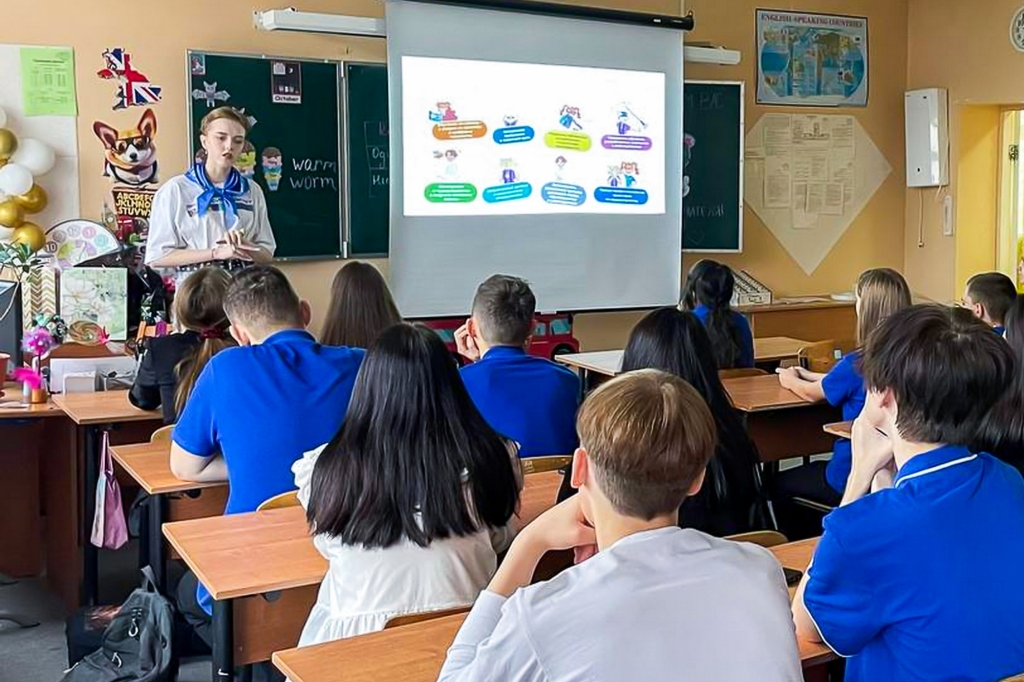 В рамках подготовки к Единому дню открытых дверей амбассадоры «Профессионалитета» Мурманского педагогического колледжа провели классные часы в г. Полярный Мурманской области: Елизавета Крылова, группа 2С, в МАОУ «Средняя общеобразовательная школа №1 им. М.А. Погодина» и Ирина Сорокина, группа 2К, в МАОУ «Гимназия».