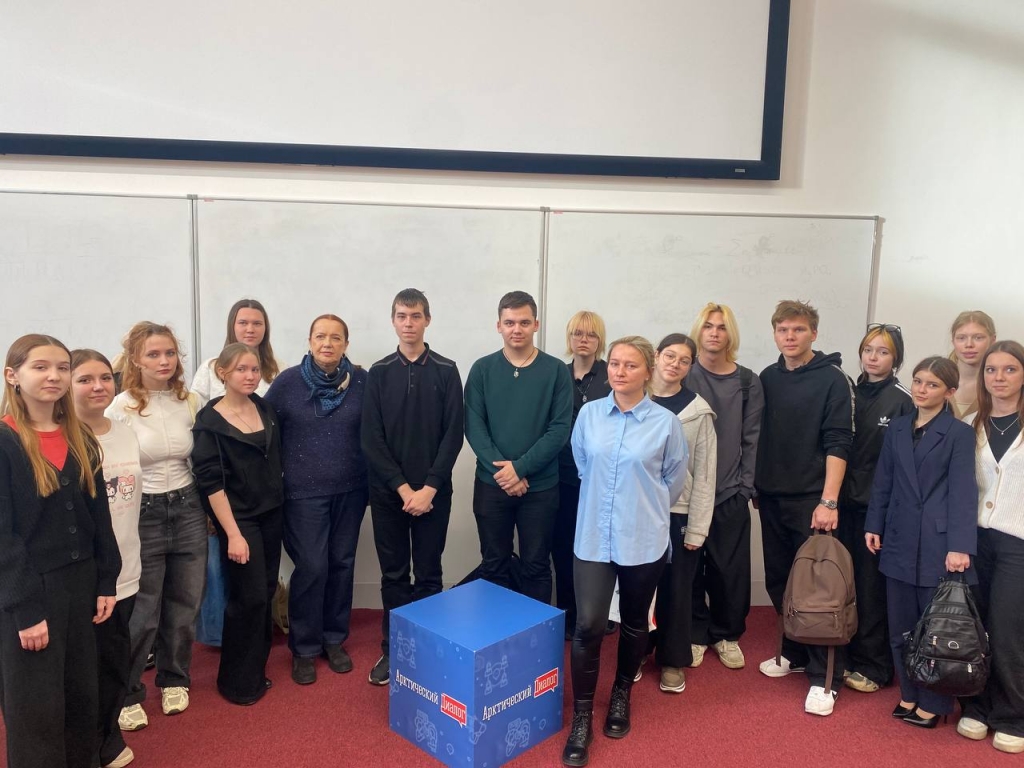 Сегодня, 17 октября 2025 года, студенты первого курса групп П2 и ПД колледжа вместе с преподавателем истории Екатериной Сергеевной Глинчук собрались на базе МАУ, чтобы принять участие во встрече с особенным гостем - внучкой маршала Советского Союза Ивана Степановича Конева, Еленой Гелиевной Коневой. Эта встреча стала значимым событием и запоминающимся опытом не только для наших первокурсников, но всех остальных гостей.
