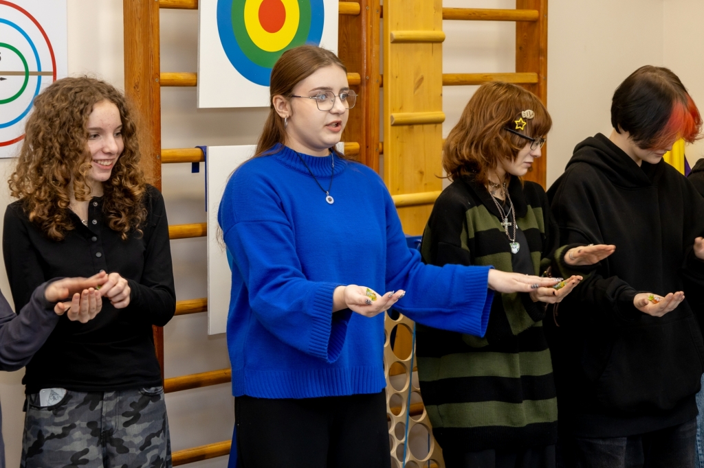 Ксения Костина и Владислава Усова, Виолетта Расторгуева и Элина Скируха, Алина Синицына и Виктория Полякова вместе с педагогами наставниками Натальей Борисовной Васильевой и Евгенией Андреевной Малик подготовили для потенциальных абитуриентов? Или студентов игры и упражнения на сближение участников коллектива, развитие логического мышления, речи, памяти и воображения.