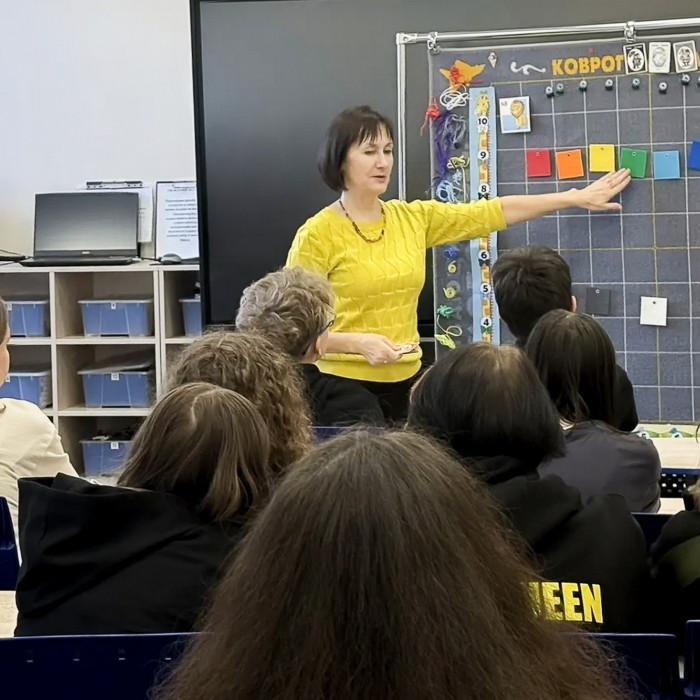 Преподаватель Любовь Леонидовна Семенова в специально оборудованном современном кабинете «Зона проектно-исследовательской деятельности» рассказала ребятам об уникальной игровой технологии В.В. Воскобовича, основными особенностями которой являются развивающие сказочные сюжеты. Обучающиеся совершили прогулку по Фиолетовому лесу, узнали, что такое Коврограф Ларчик и как с ним играть.